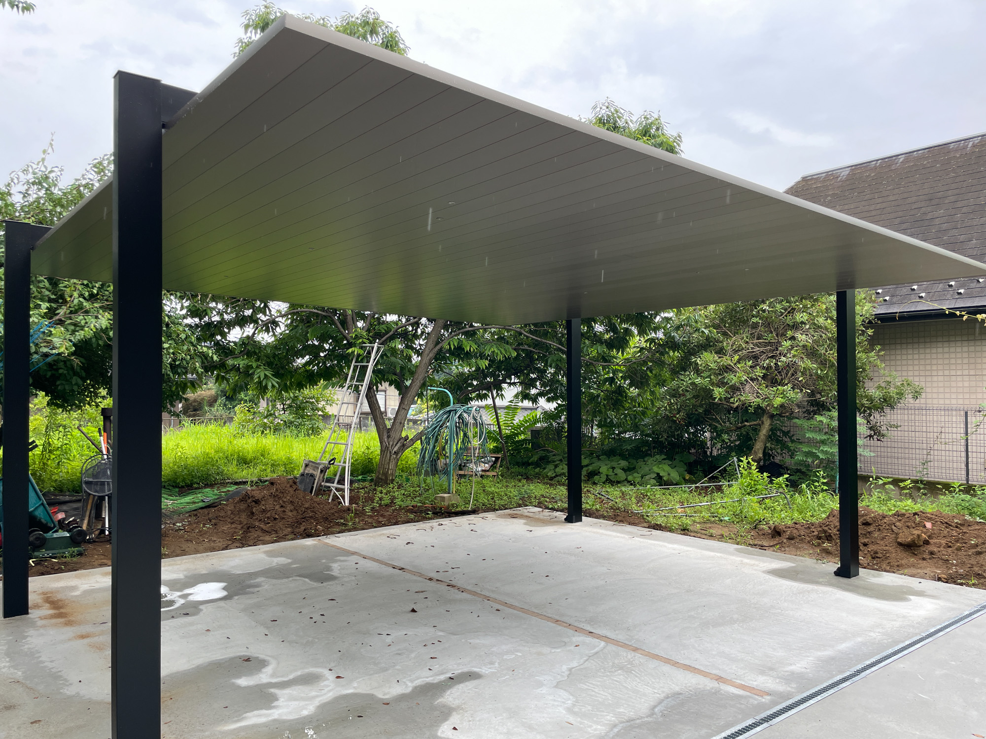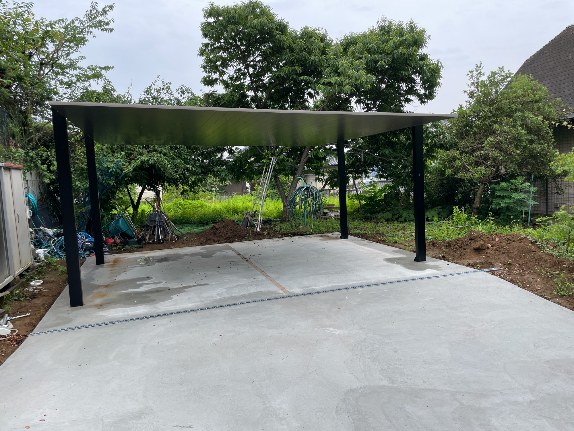 シンプルかつスタイリッシュなカーポートを新たに設置し、駐車場をコンクリート仕上げにすることで、機能性とデザイン性を兼ね備えた空間に仕上げました。