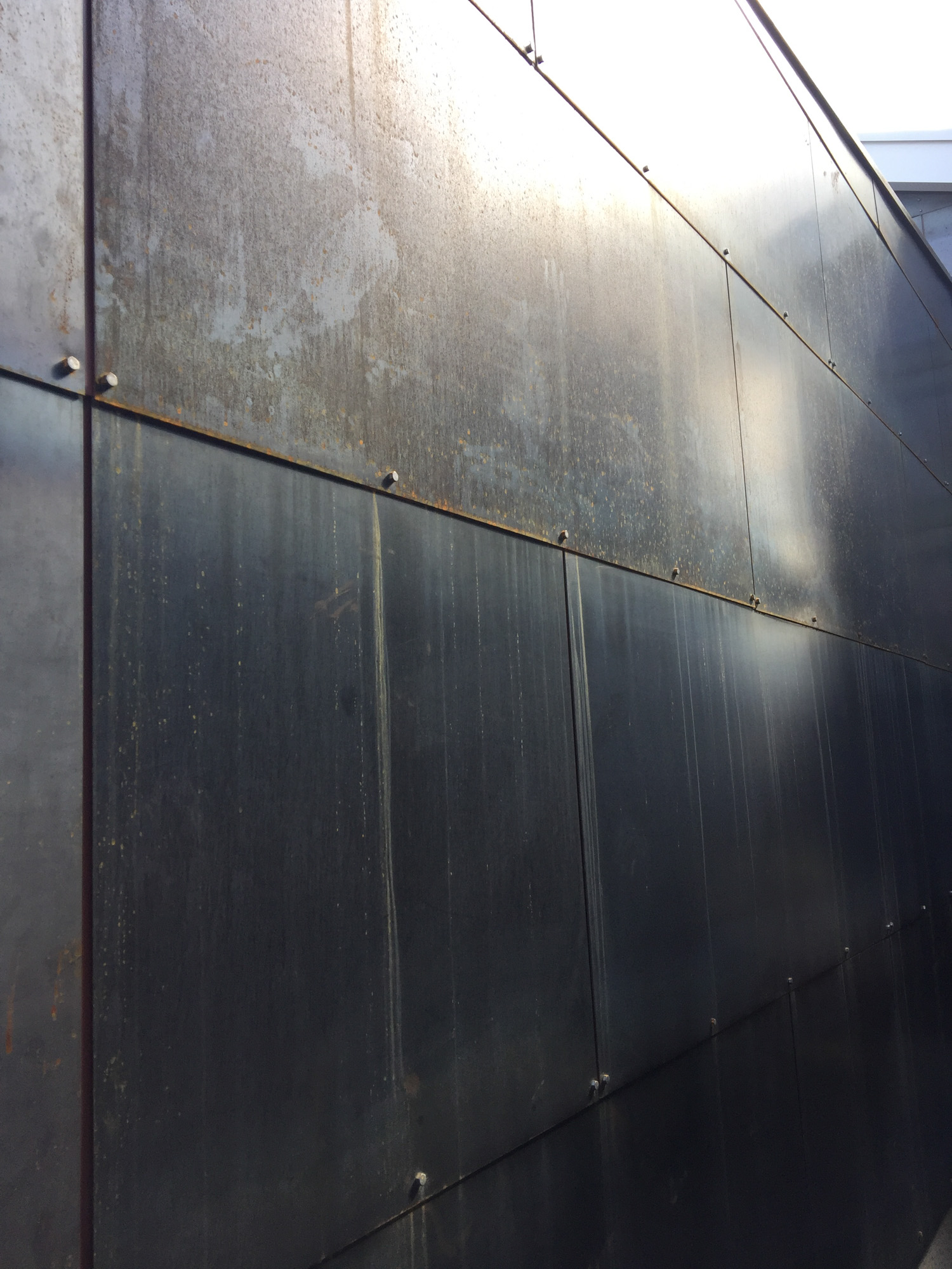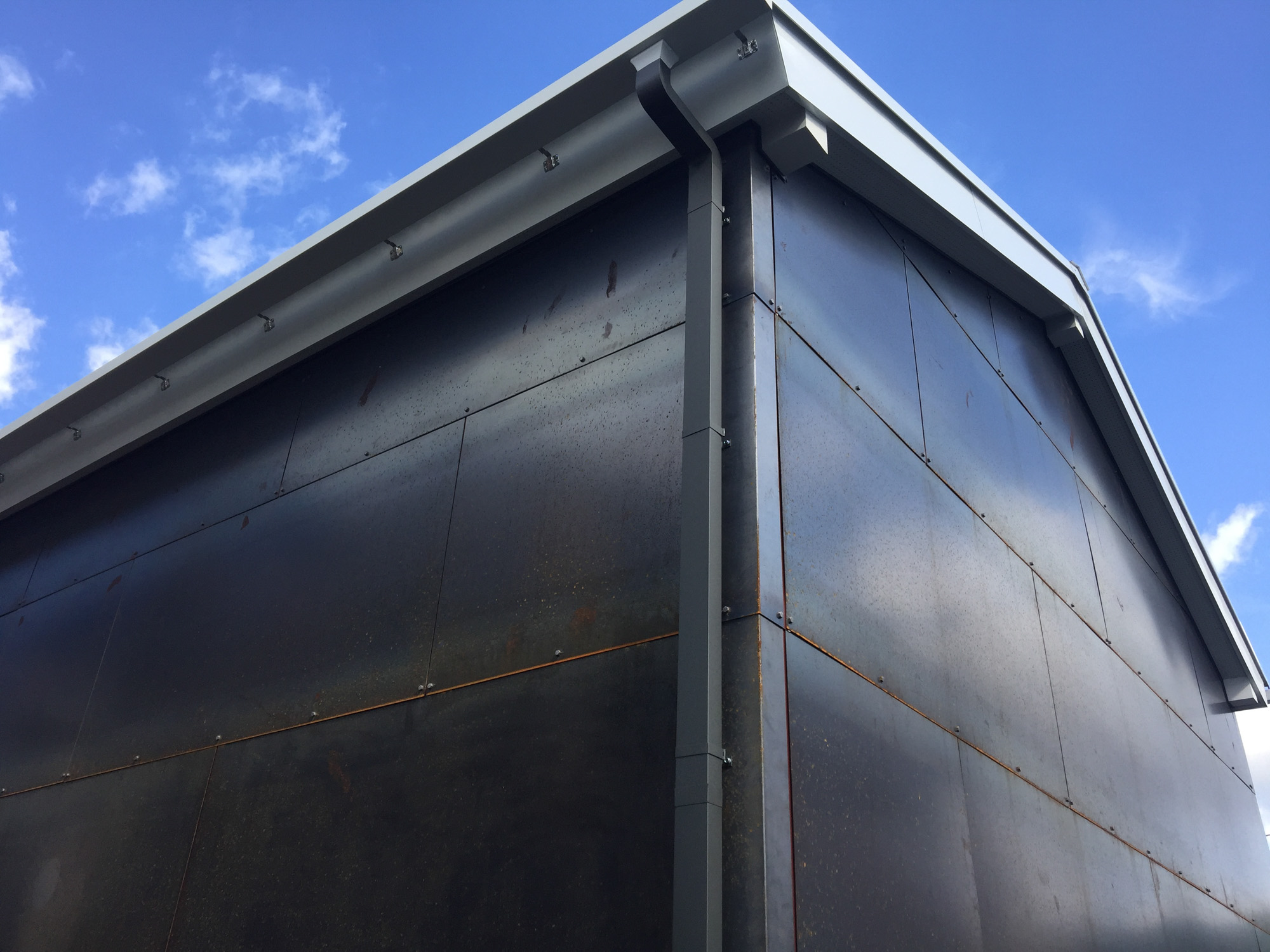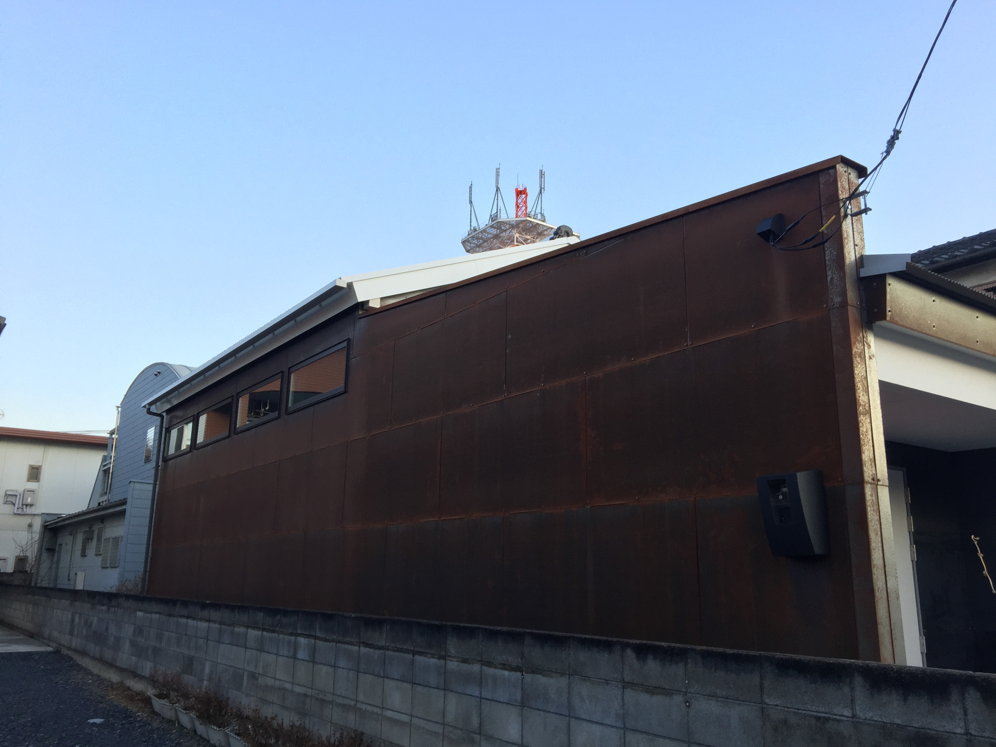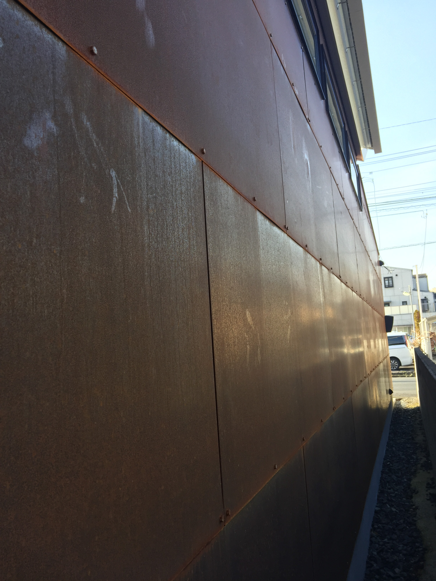 外壁には自然に錆びる鉄板を使用し、時間が経つにつれて味わい深い外観になっています。