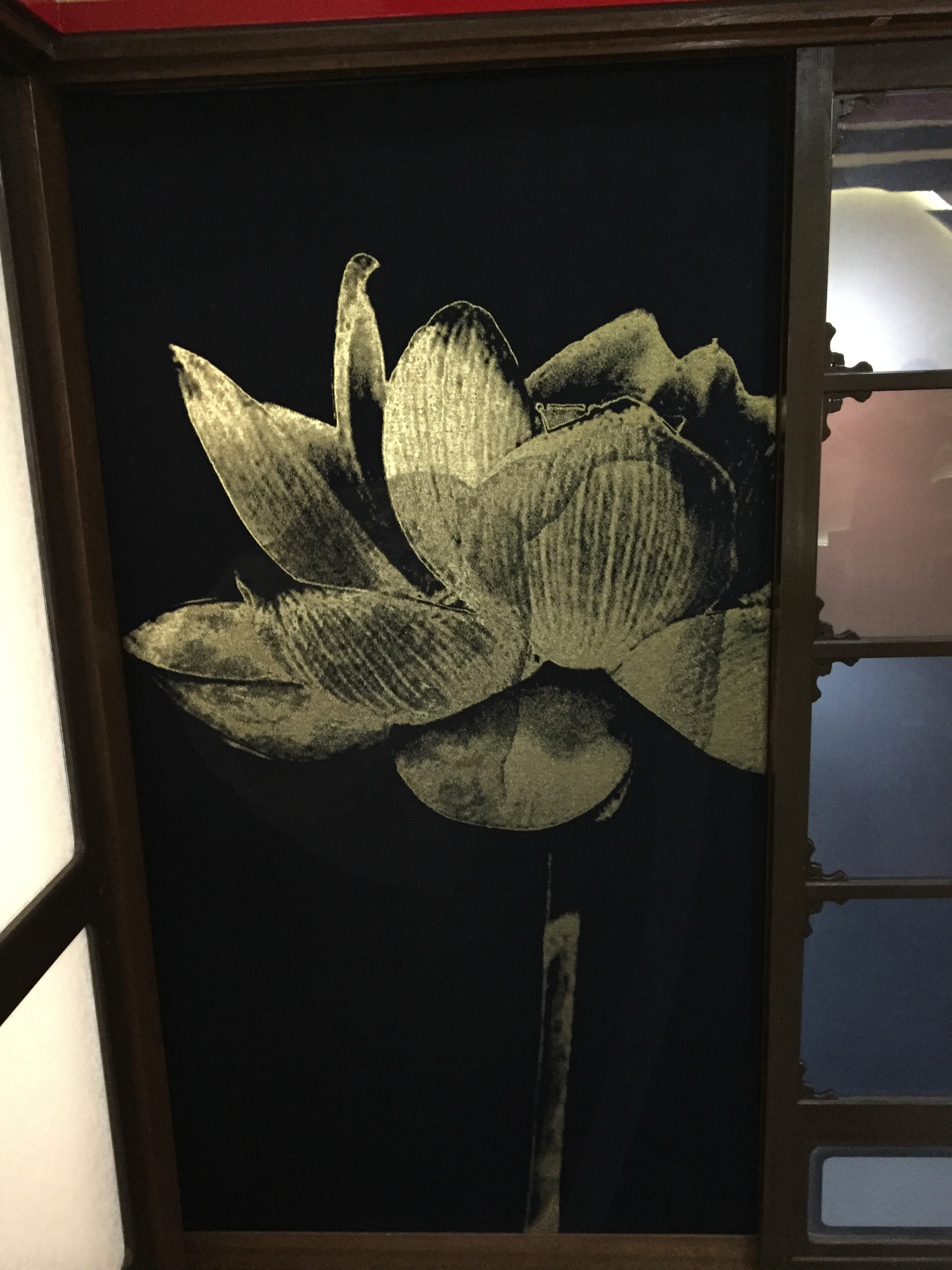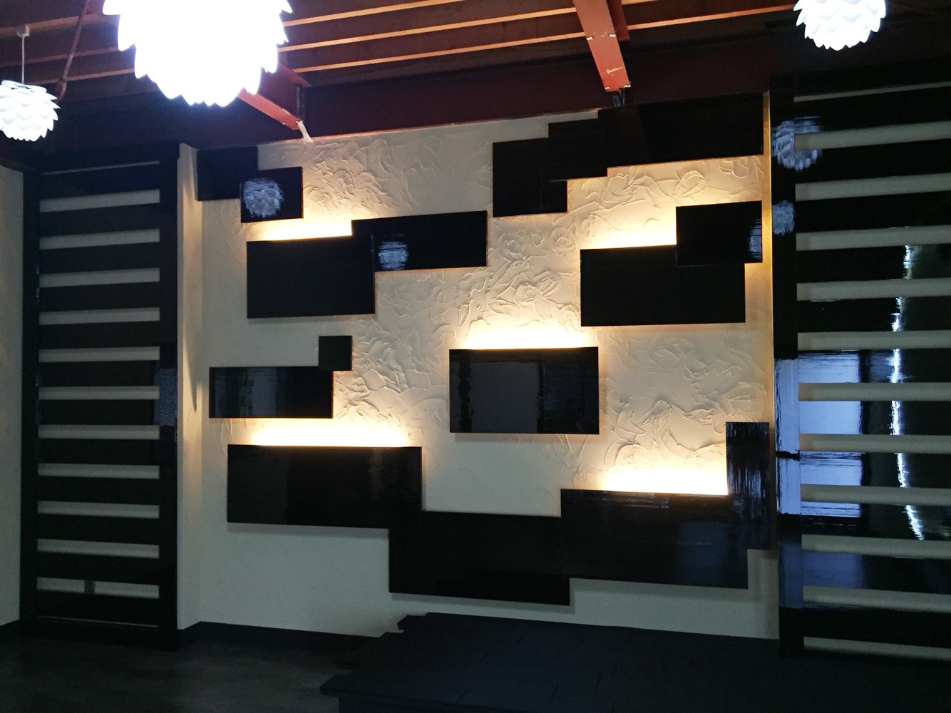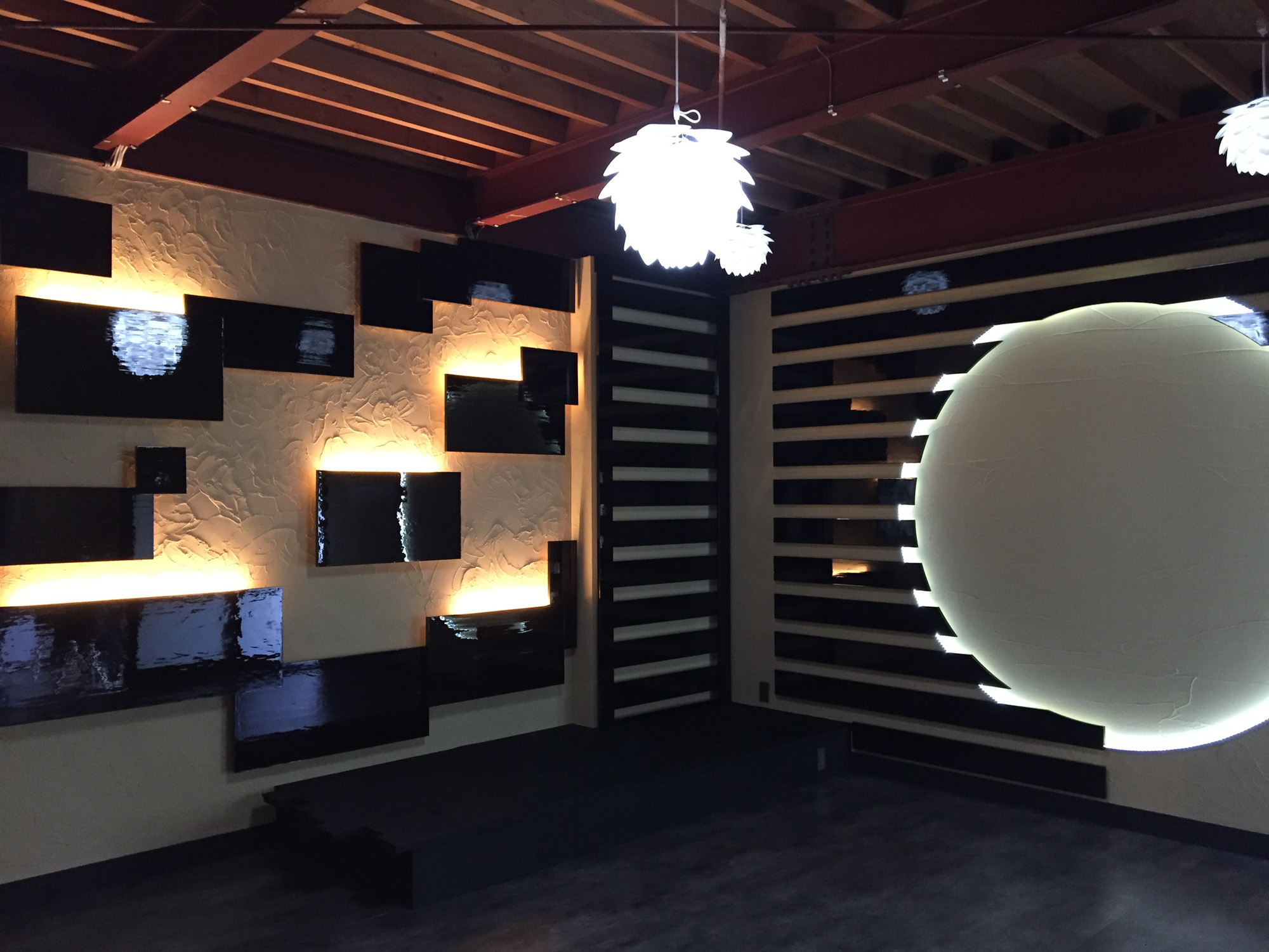 また、朧月をイメージした西面の壁や、蓮の花を模したペンダントライトを設置することで、和の雰囲気を演出しました。