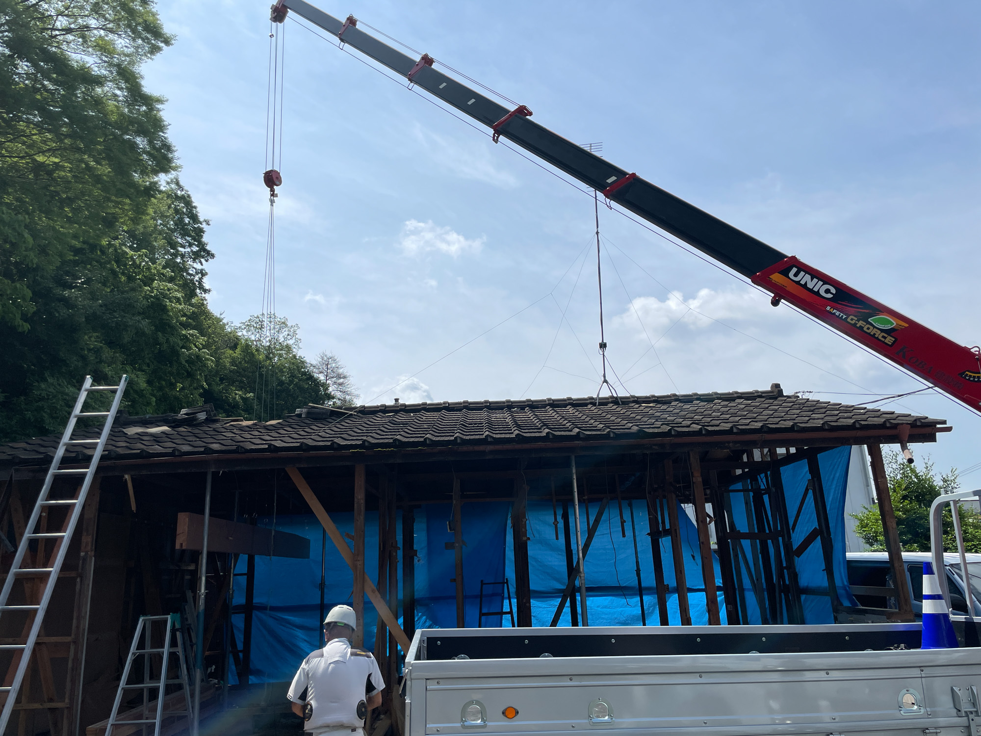 作業室を広くしたいとのご希望で、ユニックを使用して梁を大梁に変更し、空間を広げました。