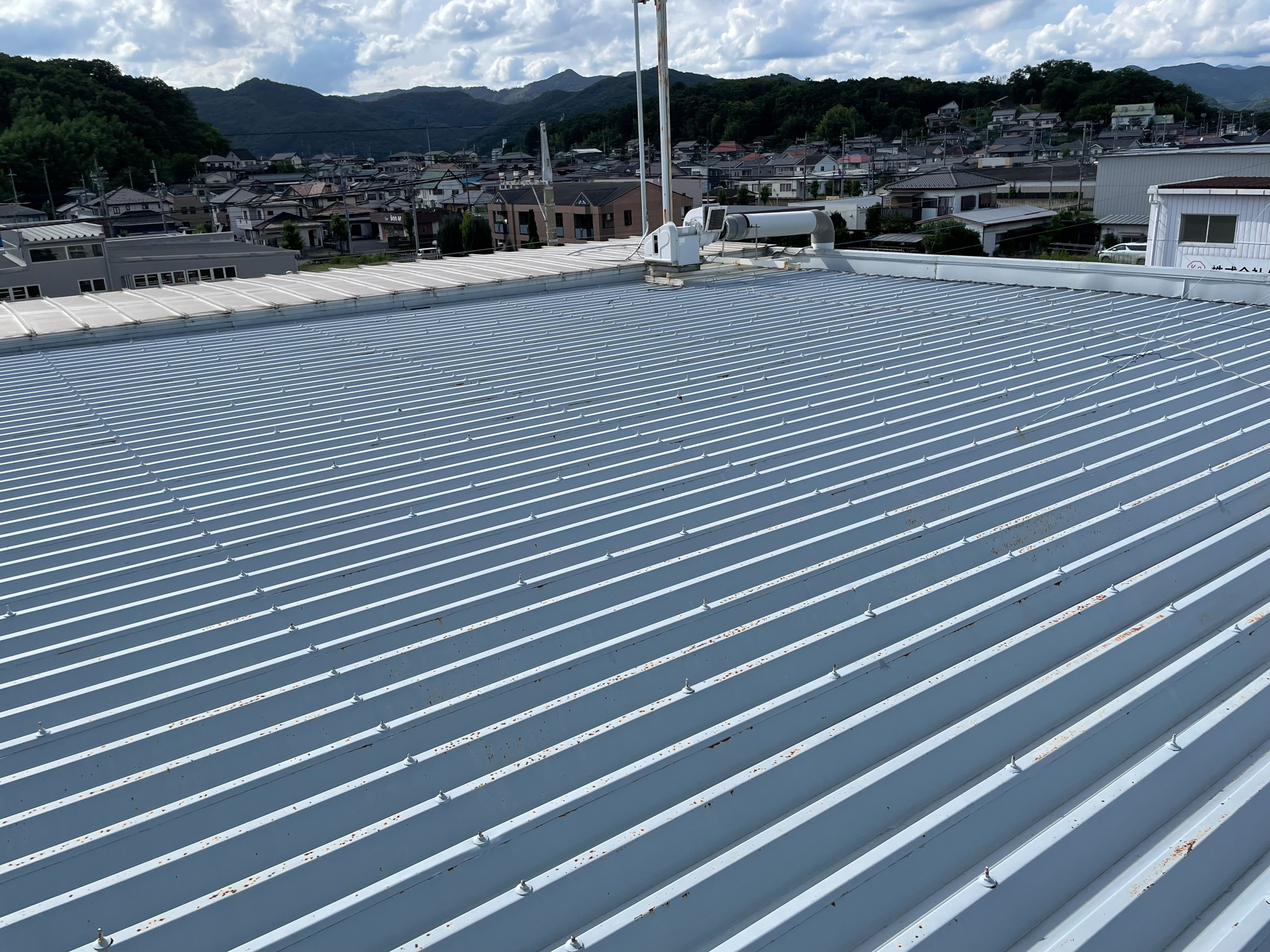工場の屋根が雨漏れしてしまったとのことで、防水処理を施し、その上から遮熱塗料を塗布しました。